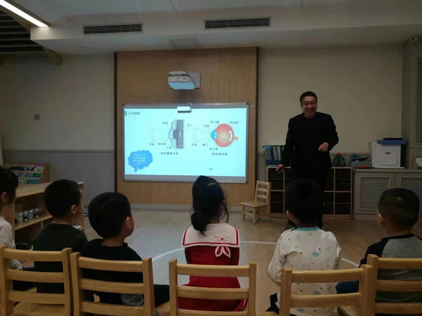 “随着各类电子产品的广泛普及,儿童因频繁接触电子产品而导致的视力不良呈高发趋势,尤其处在学前年龄段的幼稚园时期是视觉系统发育的关键时期,因此,预防眼病必须从幼儿抓起。”权科讲师从爱眼护眼的重要性和必要性讲起,继而就眼睛的结构、个人卫生、正确用眼护眼、以及近视等眼病的预防和正等方面做了详细讲解,大家在默契的互动中达到了知识和技能的有效传递。