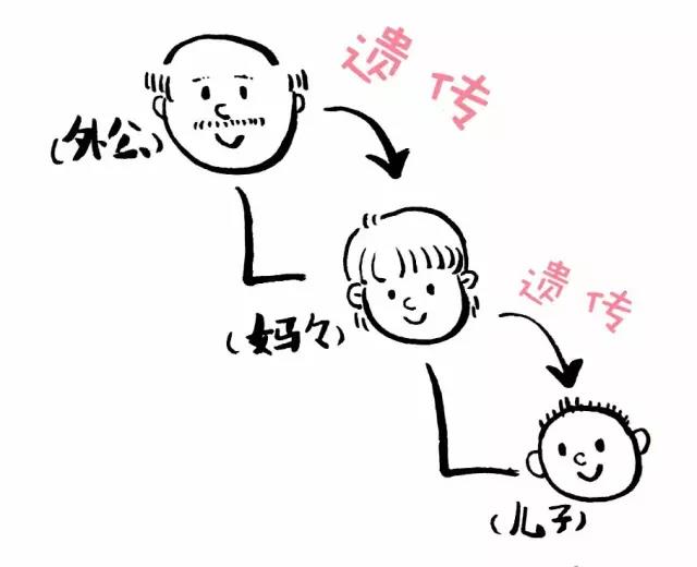这是一种隐形遗传病,且有一定的遗传规律。一般隔代遗传,男传女、女传男,也称“外公遗传法”。就是说外公有色盲,妈妈是不发病的;但妈妈携带了隐性基因,就可以遗传给儿子,儿子表现出色盲;如果是儿子生儿子,就不会色盲。