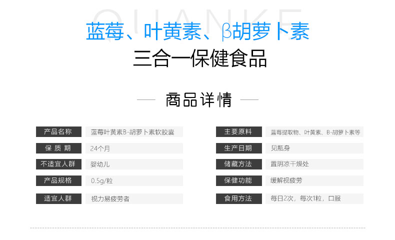 权科牌蓝莓叶黄素β-胡萝卜素软胶囊