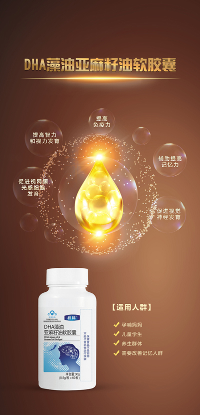 DHA,二十二碳六烯酸,是一种对人体非常重要的不饱和脂肪酸,俗称”脑黄金“,是人大脑发育、成长的重要物质之一。