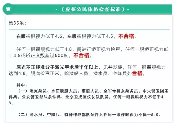 对于参军人员视力必须达到的标准要求: