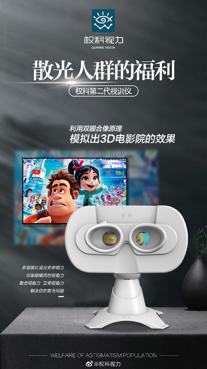 权科新一代视训仪,多组镜片适应多种视力问题,训练眼睛同时视能力,融合视能力、立体视能力,解决你的散光问题。